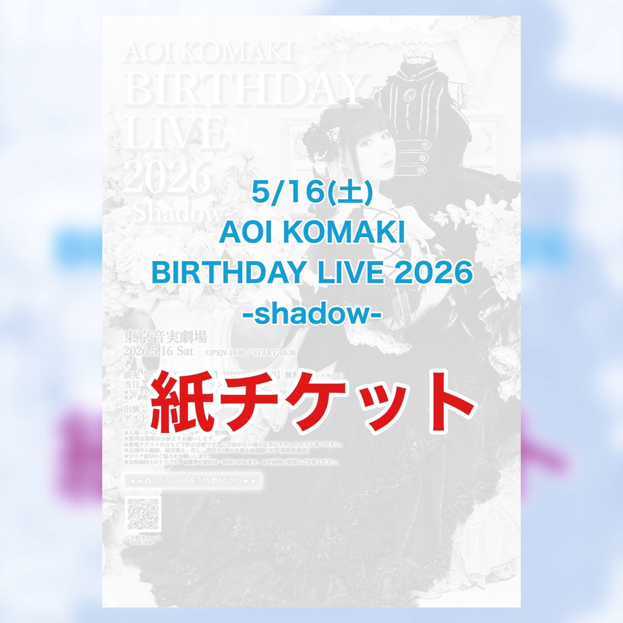 『AOI KOMAKI BIRTHDAY LIVE 2026 -shadow-』の紙チケットです。